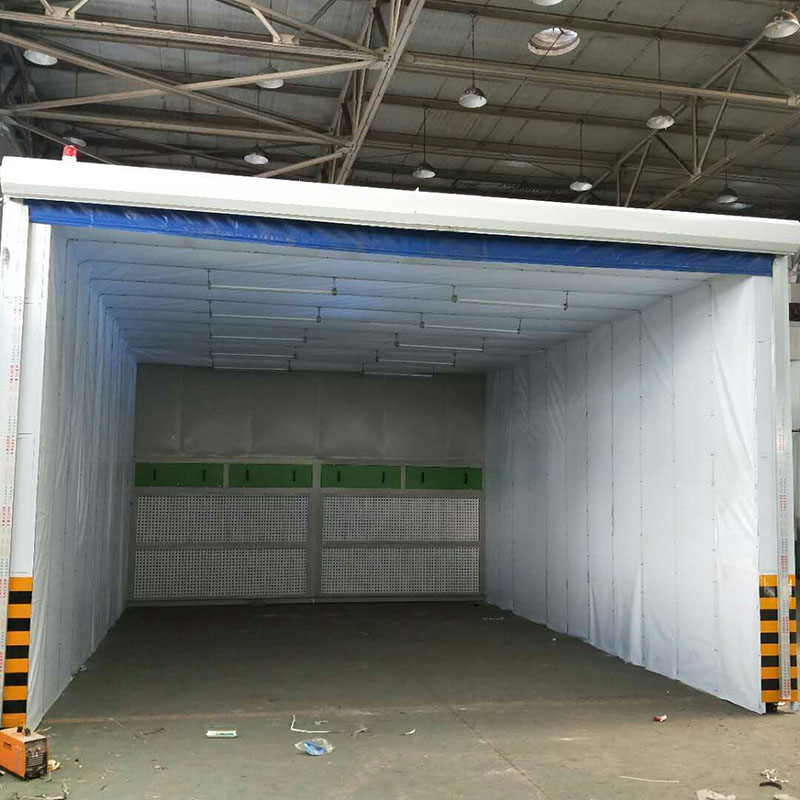 一、移動(dòng)式伸縮噴漆房是目前在造船、航天、重工機(jī)構(gòu)、鋼構(gòu)、鍋爐等行業(yè)噴漆室常用的設(shè)備。使用時(shí)可自動(dòng)擴(kuò)展形成封閉式或半封閉式的空間,不用時(shí)可收縮成一個(gè)占用很小空間的環(huán)保噴漆室設(shè)備。移動(dòng)式伸縮式噴漆室因其使用靈活、節(jié)省空間和投資成本低,在現(xiàn)代涂裝應(yīng)用中越來越廣泛。