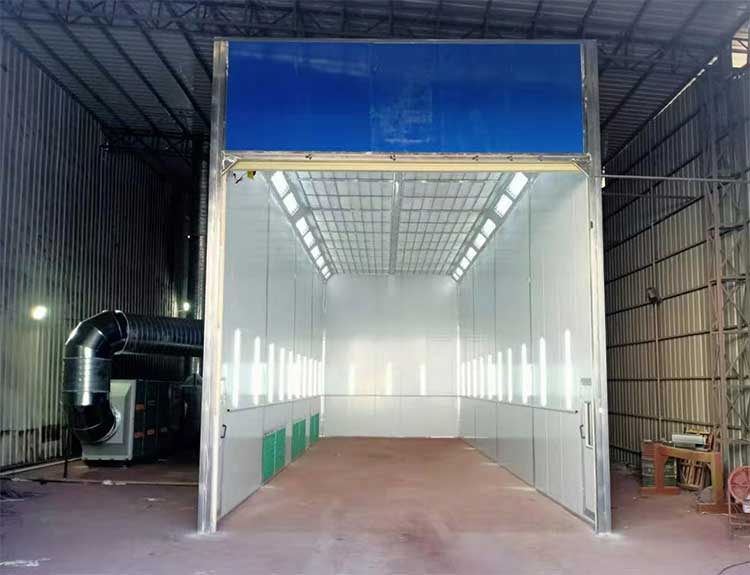 ?噴漆室:噴漆時(shí)具備通風(fēng)、照明、空氣凈化,并應(yīng)具備電源缺相報(bào)警、電壓過高或過低報(bào)警功能。噴漆室采用上部送風(fēng),側(cè)部排風(fēng)的無泵水簾式漆霧處理結(jié)構(gòu)。