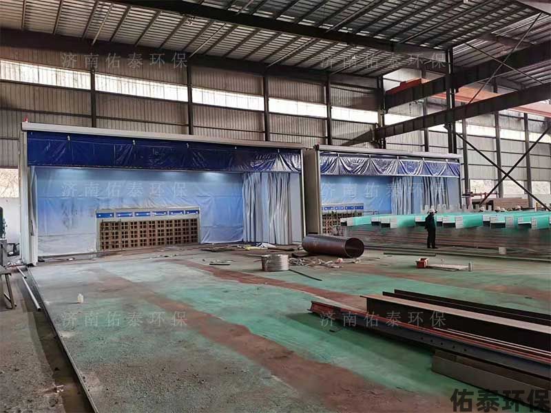 四川某企業在生產過程中,需要對鋼結構工件表面進行噴漆作業,由于工件較大,之前廢氣沒有得到有效控制,對大氣環境和室內生產環境造成較大污染。按照國家有關法律法規和相關部門要求,對在生產過程中產生的有機廢氣(包括:甲苯、二甲苯、非甲烷總烴及粉塵)進行有效處理。因此,貴公司決定對噴涂過程中產生的有機廢氣進行治理確保達標排放,以達到國家有關標準,實現綠色環保。我司根據要求作出如下解決方案移動伸縮+干式噴漆臺+性炭吸附箱。