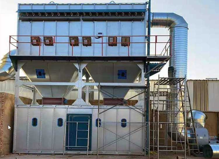 含塵氣體在風機的吸力下通過管道進入布袋除塵器過濾室,較粗顆粒直接落入灰斗或灰倉,含塵氣體經濾袋過濾,粉塵阻留于袋表,凈氣經袋口到凈氣室,由風機排入大氣。當濾袋表面的粉塵不斷增加,導致設備阻力上升到設定值時,時間繼電器(或微差壓控制器)輸出信號,程控儀開始工作,逐個開啟脈沖閥,使壓縮空氣通過噴口對濾袋進行噴吹清灰,使濾袋突然膨脹,在反向氣流的作用下,附于袋表的粉塵迅速脫離濾袋落入灰斗(或灰倉),粉塵由卸灰閥手動或自動排出。