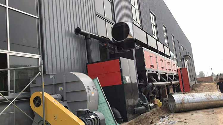 活性炭吸附箱體在有機廢氣吸附達到飽和之后,需要將活性炭中的廢氣脫附下來,然后進入催化燃燒室燃燒。在將廢氣進行催化燃燒凈化的過程中,廢氣經管道由風機送入熱交換器,將廢氣加熱到催化燃燒所需要的起始溫度。經過預熱的廢氣,通過催化劑層使之燃燒。由于催化劑的作用,催化燃燒中廢氣燃燒的起始溫度約為250~300攝氏度,遠遠低于直接燃燒法的燃燒溫度650~800攝氏度,脫附后的高溫氣體達標再次進入熱交換器,經換熱冷卻,以較低的溫度經風機排入大氣中。