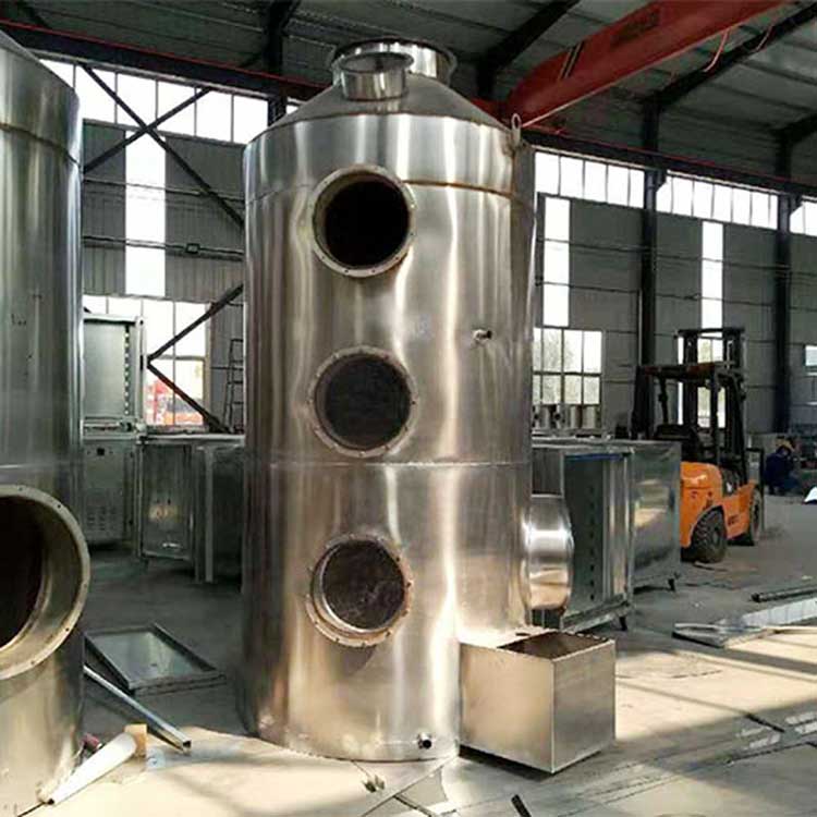 一般情況下,噴塔由耐腐蝕材料制成,如玻璃鋼,不銹鋼, pp噴塔等。工業尾氣一般為含酸、堿等腐蝕性氣體,采用防腐材料是為了使設備在運行過程中不受腐蝕。本實用新型造價低,占地面積小,操作維護方便,尤其適合處理高溫高濕、易燃易爆等含塵廢氣。