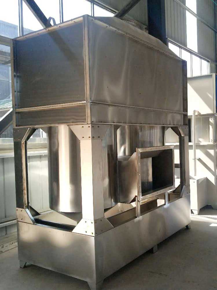3、2萬風(fēng)量方形旋流噴淋塔尺寸為L2.4*W1.3*H3米,有6個旋流筒。一個水泵,一般使用pp板或201不銹鋼制作。