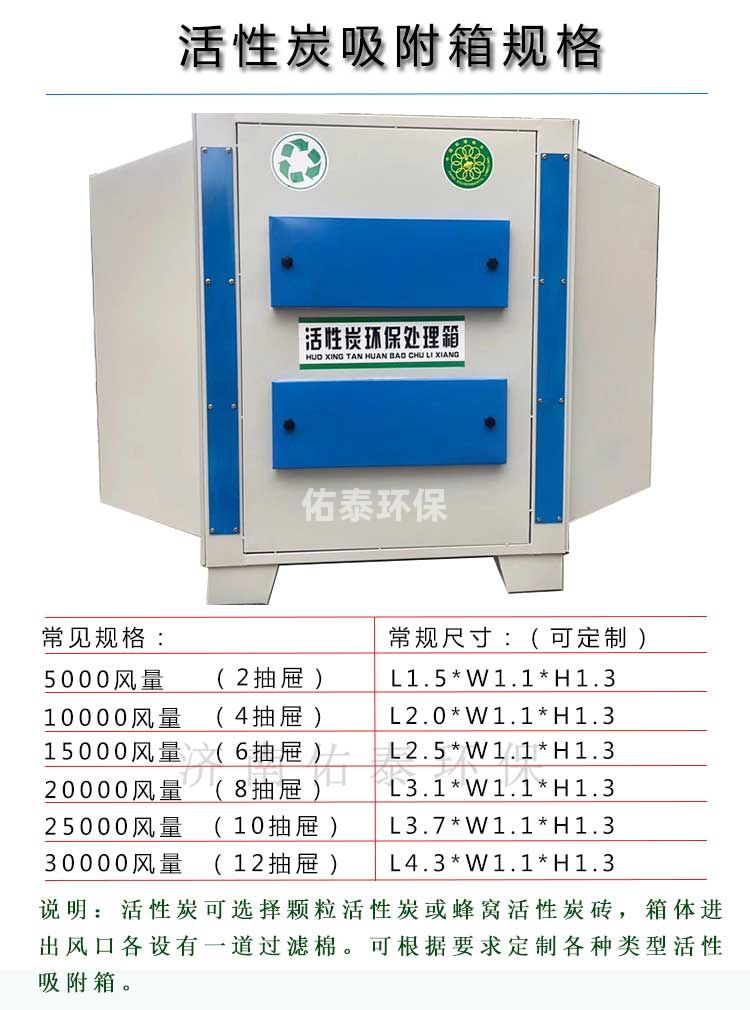 活性炭環(huán)保吸附箱根據(jù)風(fēng)量不同,匹配相應(yīng)的活性炭環(huán)保箱,常見的型號(hào)如下所示??梢愿鶕?jù)客戶的要求定制。