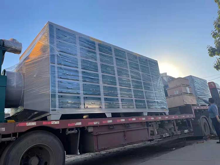 10萬活性炭環(huán)保箱尺寸:L5.5*W1.5*H2.3(m),2.0mm鍍鋅板制作,外表噴塑。共42個(gè)活性炭抽屜,2520塊(L10*W10*H10)活性炭磚。進(jìn)風(fēng)口一道玻纖過濾網(wǎng),分上下兩層制作,出風(fēng)口一道活性炭過濾棉。活性炭碘值400。