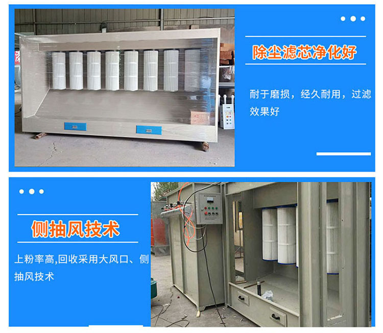 塑粉回收機(jī)由箱體、粉末過濾系統(tǒng)、抽風(fēng)系統(tǒng)、控制系統(tǒng)等四大部分組成,噴涂時(shí)產(chǎn)生粉塵經(jīng)過高精度濾筒過濾,凈化氣流由抽風(fēng)機(jī)排出室外,整個(gè)程序由電氣自動(dòng)控制。