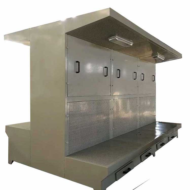 2.2、打磨除塵工作臺是針對工位較多、打磨量較大的工況而開發出的一款實用型工業除塵設備。該款除塵設備采用高效過濾器與集塵主機連接的多效收集方式,凈化效率達到99.9%。獨特的臺式設計非常***,四面排風,內置式除塵系統,風機隔聲,無須管道連接,清潔后的空氣可在室內循環排放,減少了能源消耗。