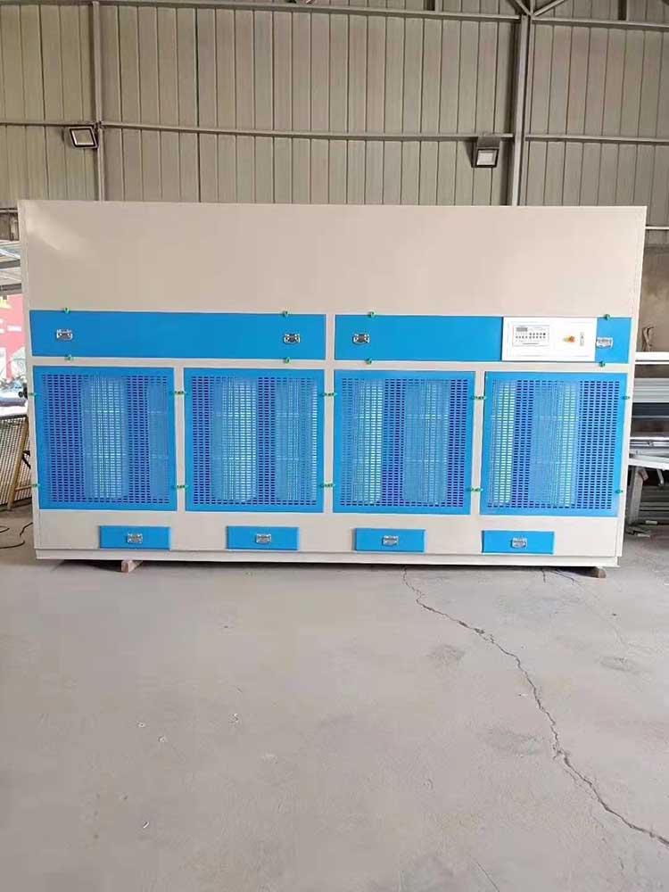 2.1、煙塵或者粉塵通過風機產生的負壓經側排風口和下排風口進入凈化器,氣流進入導流通道,大顆粒粉塵與導流板碰撞后,大顆粒粉塵在重力的作用下落入集灰抽屜,含細小顆粒的粉塵進入過濾室,含塵氣體由濾袋外表面穿過濾芯,粉塵則被濾芯阻攔在其表面,當被阻攔的粉塵在濾芯表面不斷沉積時,通過脈沖噴吹對濾筒清灰使得沉積在濾芯上的粉塵顆粒在振動的作用下脫離濾芯表面落入集灰抽屜中,使得整個濾芯表面都得到清掃,凈化后的空氣由風道、經風機排出。