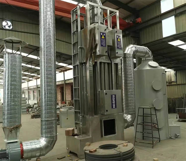 2.高壓靜電場電壓可以達到35KV以上,電暈電流50mA以上對于極微小的粉塵和油霧顆粒捕捉能力很強。排放氣體為較淡的蒸汽,無異味。